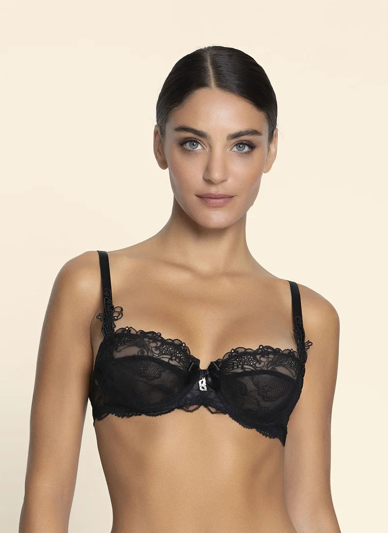 Le soutien-gorge demi-bonnet Lise Charmel Soir De Venise en Noir Diamant offre un galbe séduisant et un raffinement intemporel.